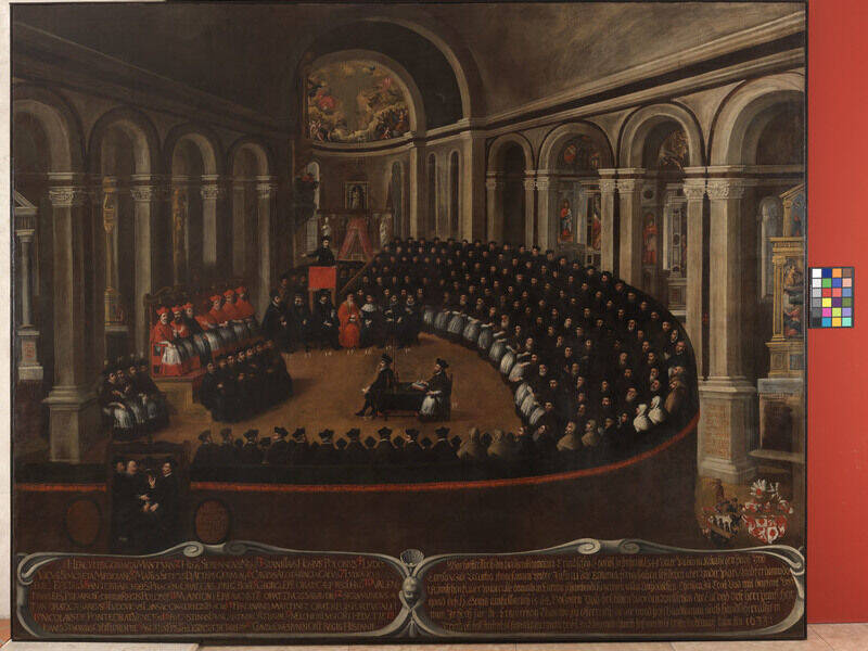 Trento deve il suo fascino di città dipinta al famoso Concilio, grande evento della Cristianità che qui si svolse dal 1545 al 1563 e che la trasformò in una capitale europea con centinaia fra cardinali, prelati, ambasciatori, nobili, tutti accompagnati da seguiti sfarzosi. Fu l'occasione, questa, per un rinnovamento urbano senza precedenti, che dette alla città un'impronta rinascimentale che ancora oggi la caratterizza. Questo itinerario tematico conduce quindi attraverso i luoghi cruciali del Concilio: si parte dal Castello del Buonconsiglio, ai tempi luogo per eccellenza del potere, delle arti e delle feste e si prosegue verso il Convento di San Marco, dove dimoravano i principali esponenti dell'Ordine Agostiniano, per poi addentrarsi nel centro storico per apprezzare la Chiesa di Santa Trinità, da cui partì la processione che inaugurò l'assise, la massiccia Torre del Massarello-dove dimorò l'omonimo Segretario delle sedute del Concilio, e l'elegante Palazzo Roccabruna, ai tempi del Concilio preso in affitto dal conte di Luna ed ora Casa dei Prodotti Trentini. Il percorso tocca la Casa Cazuffi-Rella, con la facciata affrescata più importante della Trento rinascimentale, la Cattedrale di San Vigilio, sede delle sessioni ufficiali di cui rimane ancora oggi il Crocefisso nell'omonima cappella, Palazzo Thun, all'epoca una delle principali residenze gentilizie della città, la Basilica di Santa Maria Maggiore, dove si tennero le principali congregazioni, ed infine Palazzo delle Albere, residenza extraurbana che ospitò banchetti e tornei per l'occasione. Tra le testimonianze iconografiche dell’assise tridentina, vi sono due tele settecentesche raffiguranti l’apertura e la chiusura del Concilio nella cattedrale di San Vigilio e un dipinto del 1633 raffigurante una congregazione generale in Santa Maria Maggiore; queste preziose testimonianze pittoriche sono custodite presso il Museo Diocesano Tridentino.
