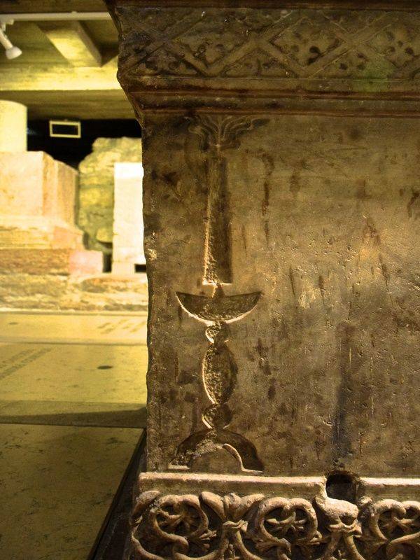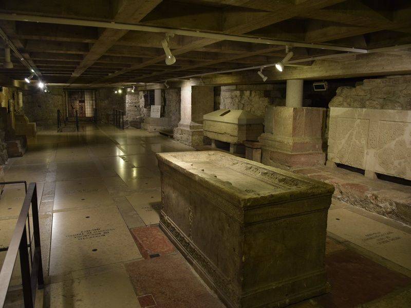 Dall’interno della cattedrale si può accedere con una serie di gradini alla basilica paleocristiana.