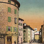 La cosiddetta “Rotonda” fu trasformata nel 1595 per volere del Principe Vescovo e Cardinale Ludovico Madruzzo, come attesta un’epigrafe murata all’interno, a forma di bastione merlato. Perduta la funzione difensiva originaria, nel 1835 il torrione fu ridefinito nell'aspetto attuale per ricavarvi abitazioni e negozi. Durante il Concilio questa zona della città fu teatro di varie cerimonie, tra cui i tre solenni ingressi dei legati pontifici, avvenuti rispettivamente il 13 marzo 1545, il 29 aprile 1551, e il 16 aprile 1561, e il ricevimento del cardinale di Lorena, giunto dalla Francia con largo seguito il 13 novembre 1561. In tali occasioni il Magistrato Consolare faceva erigere archi e altri apparati effimeri.