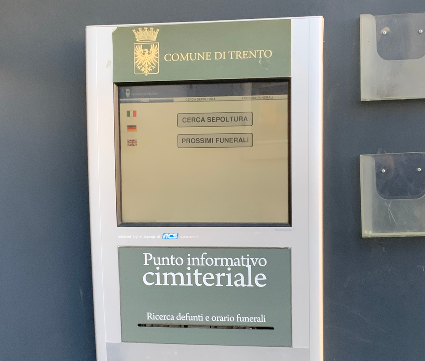 Vuoi conoscere luogo e orario in cui si svolgerà un funerale? Cerchi l’ubicazione di un defunto al cimitero? Puoi farlo da casa o con il totem al cimitero di Via Rosmini
